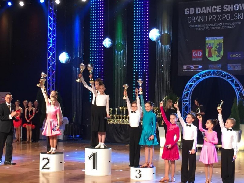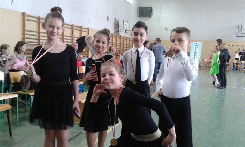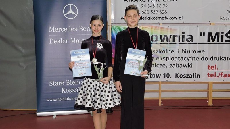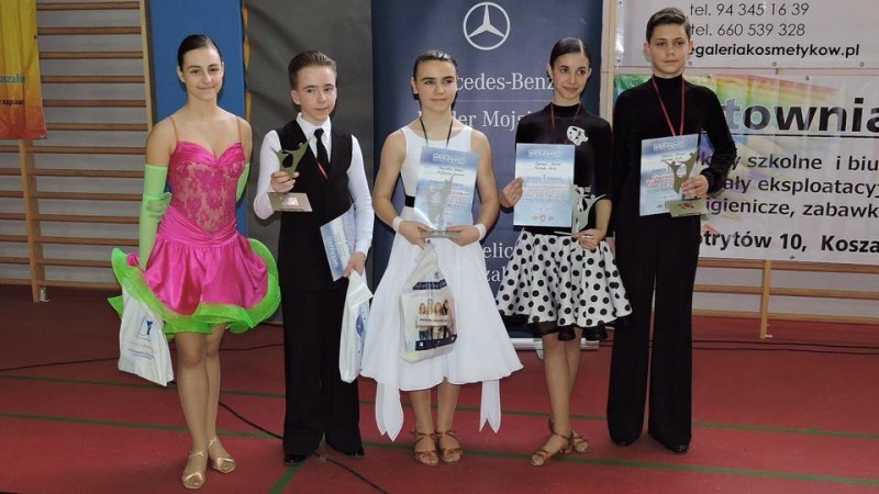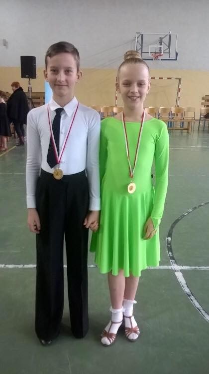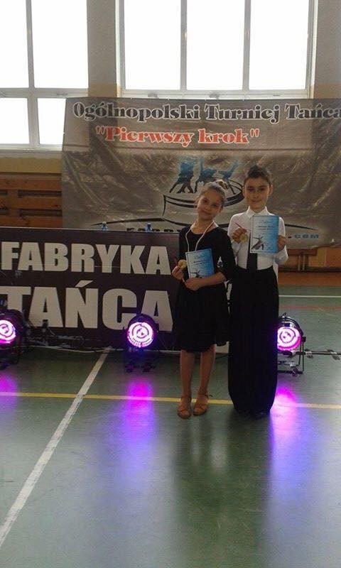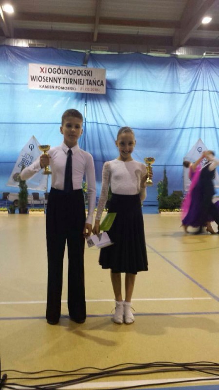 I miejsce Aleks Stube - Julia Nitecka 8-9 lat kl. HIII miejsce Mateusz Krzysztofiak - Wiktoria Borysławska 12-13 lat kl. E, dodatkowo zatańczyli w wyższej klasie D i w tańcach latynoamerykańskich zajęli IV miejsce a w standardzie IX miejsce